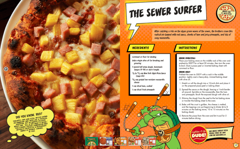 De Amerikaanse uitgeverij Insight Editions brengt op 9 mei een kookboek van de vier vechtende schildpadden uit. In het boek kan je de recepten voor 64 verschillende pizza's vinden, zoals de klassieke New York Style Pepperoni of de Lean, Mean, and Green and Shredder's Revenge.