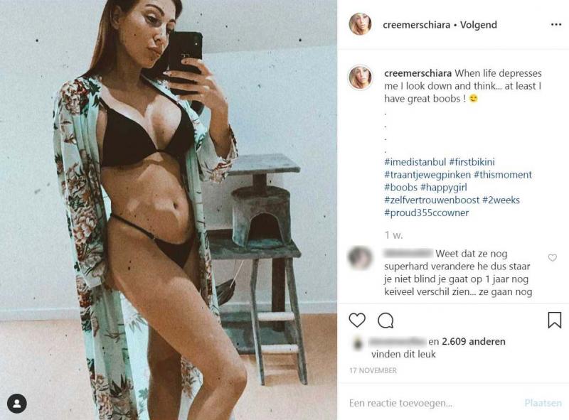 Volgens Chiara is een borstvergroting nog al te vaak taboe. Ik snap niet waarom. Ik voel me gelukkig nu, en daarom wil ik er graag over vertellen. Ik ben de voorbije tien jaar van mijn leven nooit écht zorgeloos gelukkig geweest. Het klinkt stom, maar: YOLO! You only live once! Waarom zou ik ongelukkig moeten zijn over iets dat je kan verhelpen?, besluit ze.