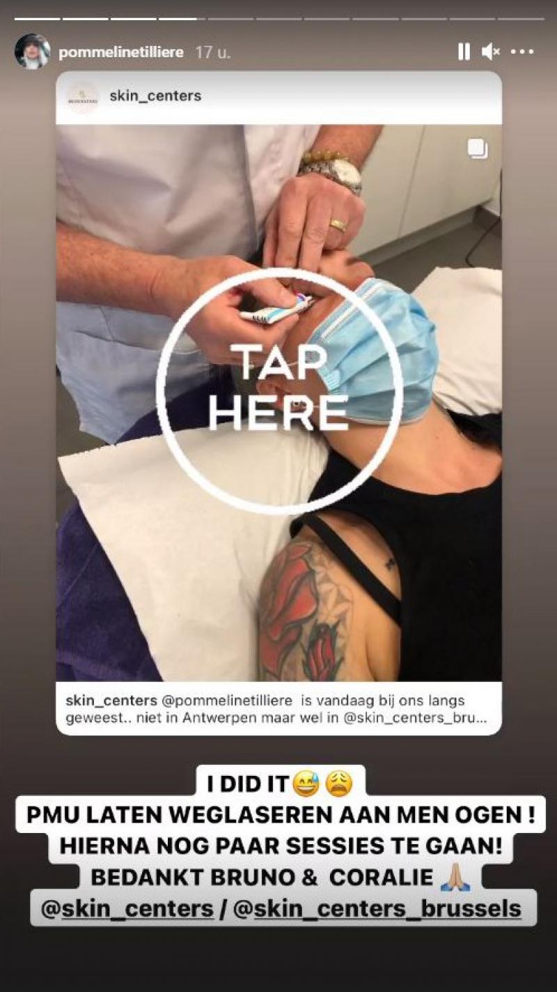 De 27-jarige Temptation'-verleidster liet enkele jaren geleden permanente eyeliner zetten. Daar wilde ze nu van af, dus liet ze de eyeliner weglaseren bij Skincenters Brussels. Het gaat om een delicate ingreep die met de nodige voorzichtigheid uitgevoerd moet worden omdat je er oogbeschadiging mee kan oplopen.