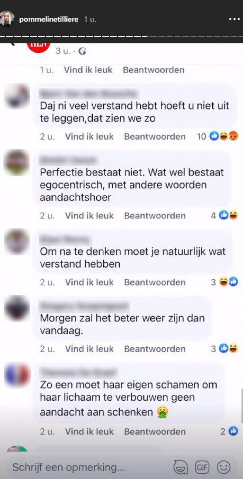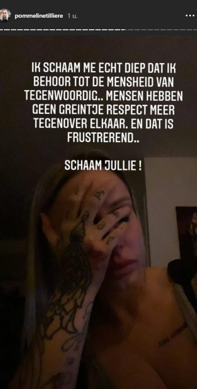 De 26-jarige tattoo-artieste vindt dat erg jammer omdat ze net wil aankaarten dat sommige mensen er beter willen uitzien omdat ze onzeker worden door dergelijke reacties. Ze is dan ook niet te spreken over de haatspuierij. Ik schaam mij kapot dat ik tot de groep van de mensen behoor. Ik ben open en eerlijk en zeg dat ik spijt heb van bepaalde ingrepen. Daarmee wil ik duidelijk maken wat het probleem is in de maatschappij, dat we ons te veel laten doen door sociale media en dat ik daar zelf ook ben ingetrapt. Ik kom daar voor uit en nu is het weer niet goed. Opnieuw noemen mensen mij dom en zeggen ze dat ik geen hersenen heb. Zelfs na drie jaar wennen dergelijke rotcommentaren niet, ik ben daar eerlijk in. Ik schaam mij echt gewoon diep voor de mensen die dergelijke commentaren geven. Echt waar, schaam jullie kapot, reageert ze op Instagram.