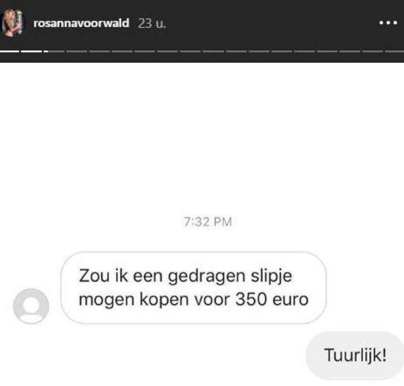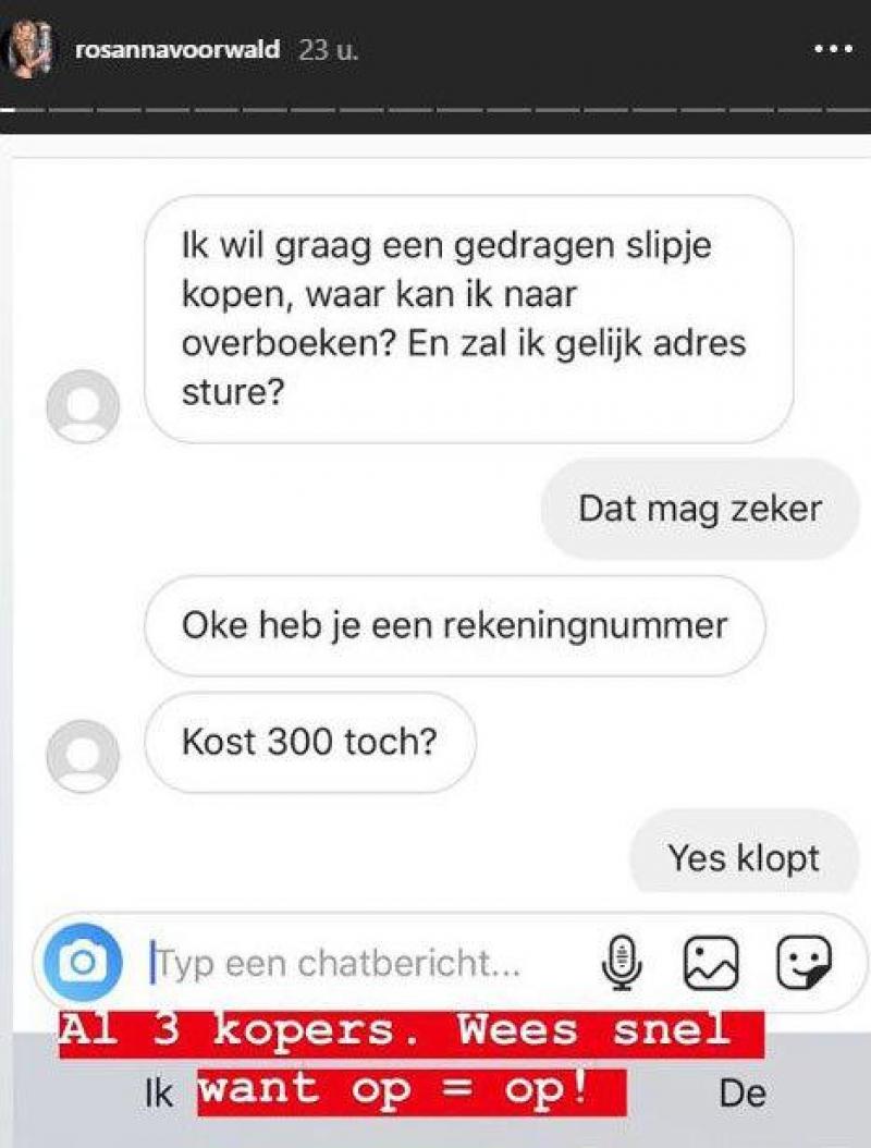 Bekendheid kan je heel wat centjes opleveren. Dat bewijst althans Rosanna Voorwald, die in 2017 met haar vriend Niels van der Zanden (29) meedeed aan Temptation Island'. De 27-jarige blondine kondigde via Instagram aan dat ze heel wat gedragen slipjes en beha's verkoopt.