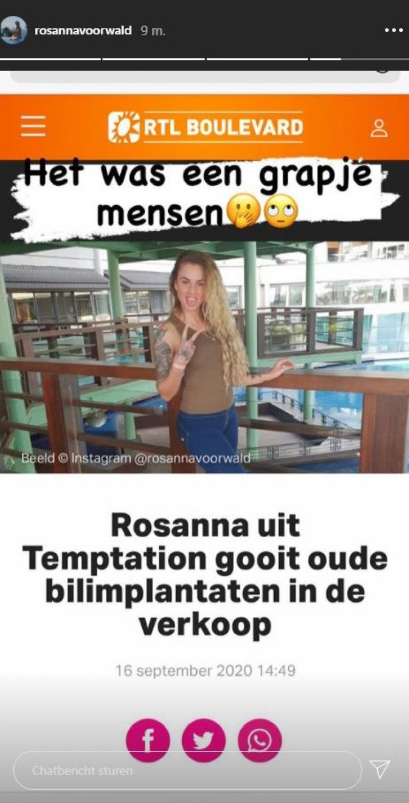 Intussen gaf ze aan dat ze het eigenlijk niet meende. Het was maar een grapje, mensen, maakte ze duidelijk. Toch is het niet de eerste keer dat de Nederlandse opvallende zaken probeert te verkopen. Begin dit jaar bood ze haar gedragen slipjes en beha's aan voor een prijsje. Sommige items gingen de deur uit voor maar liefst 1.000 euro.