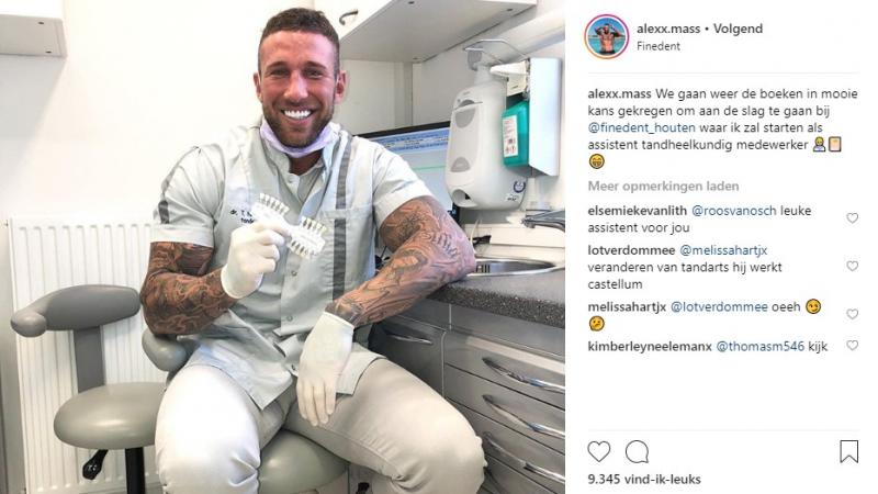 Maar hét gespreksonderwerp op sociale media waren zijn hagelwitte tanden. De 27-jarige kleerkast uit Breda werkt momenteel nog als personal trainer in zijn sportschool Healty Time in Berlicum, maar binnenkort gaat hij aan de slag als jawel tandartsassistent. Dat kondigde hij aan op Instagram. We gaan weer de boeken in. Mooie kans gekregen om aan de slag te gaan bij @finedent_houten waar ik zal starten als assistent tandheelkundig medewerker, klinkt het.