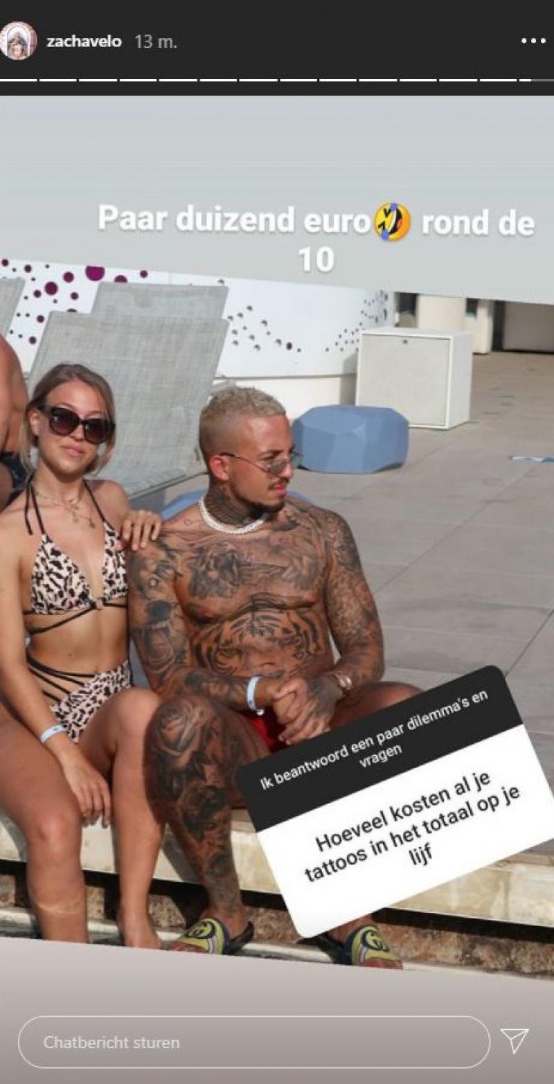 Net zoals Fabrizio kleurplaat' Tzinaridis heeft Zach heel wat tattoos op zijn lichaam staan. Tijdens een vragenronde op Instagram vroeg iemand wat dat allemaal gekost heeft. Rond de 10.000 euro, antwoordde hij.