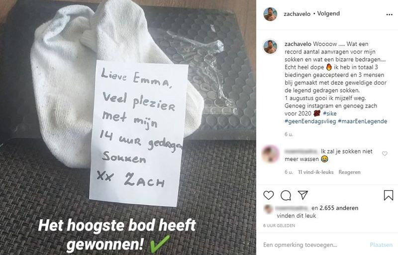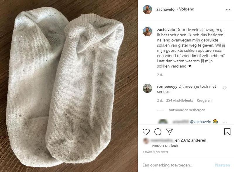 Herinner je je nog dat Rosanna uit Temptation Island' haar gedragen ondergoed verkocht voor tot wel 1.000 euro per stuk? Wel, die actie heeft Zach duidelijk geïnspireerd, want hij doet nu hetzelfde, al gaat het enkel om gedragen kousen. Ik heb dus besloten om mijn gebruikte sokken van gisteren weg te geven. Wil jij mijn gebruikte sokken opsturen naar een vriend of vriendin of zelf hebben? Laat dan weten waarom jij mijn sokken verdient, schreef hij onlangs op Instagram.