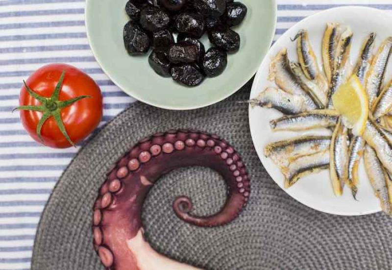 1. Kook de tentakel gaar in een ruime hoeveelheid water of eventueel visbouillon. Bak de calamares ondertussen op een hoog vuur in een pan met olijfolie en een teentje look. Meer dan een minuutje hebben ze niet nodig, anders worden de calamares taai. Zet ze even opzij.