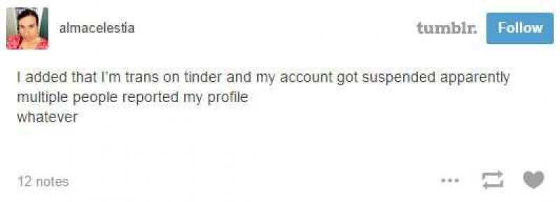 Transgenders laten via verschillende sociale media weten dat ze geblokkeerd worden op de dating app Tinder. Hoewel de gebruikers het zelf niet helemaal zeker zijn, vermoeden ze wel dat het iets te maken heeft met hun genderidentiteit.