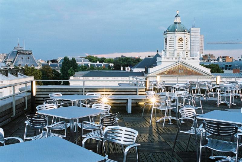 Bovenop het prachtige art-nouveaugebouw van het Muziekinstrumentenmuseum bevind je je op het dak van onze hoofdstad. Je hebt een mooi zicht op het levendige Koningsplein, zonder last te hebben van het drukke verkeer ver beneden jou. De keuken is niet bijzonder verfijnd, maar de locatie is in elk geval wel top.