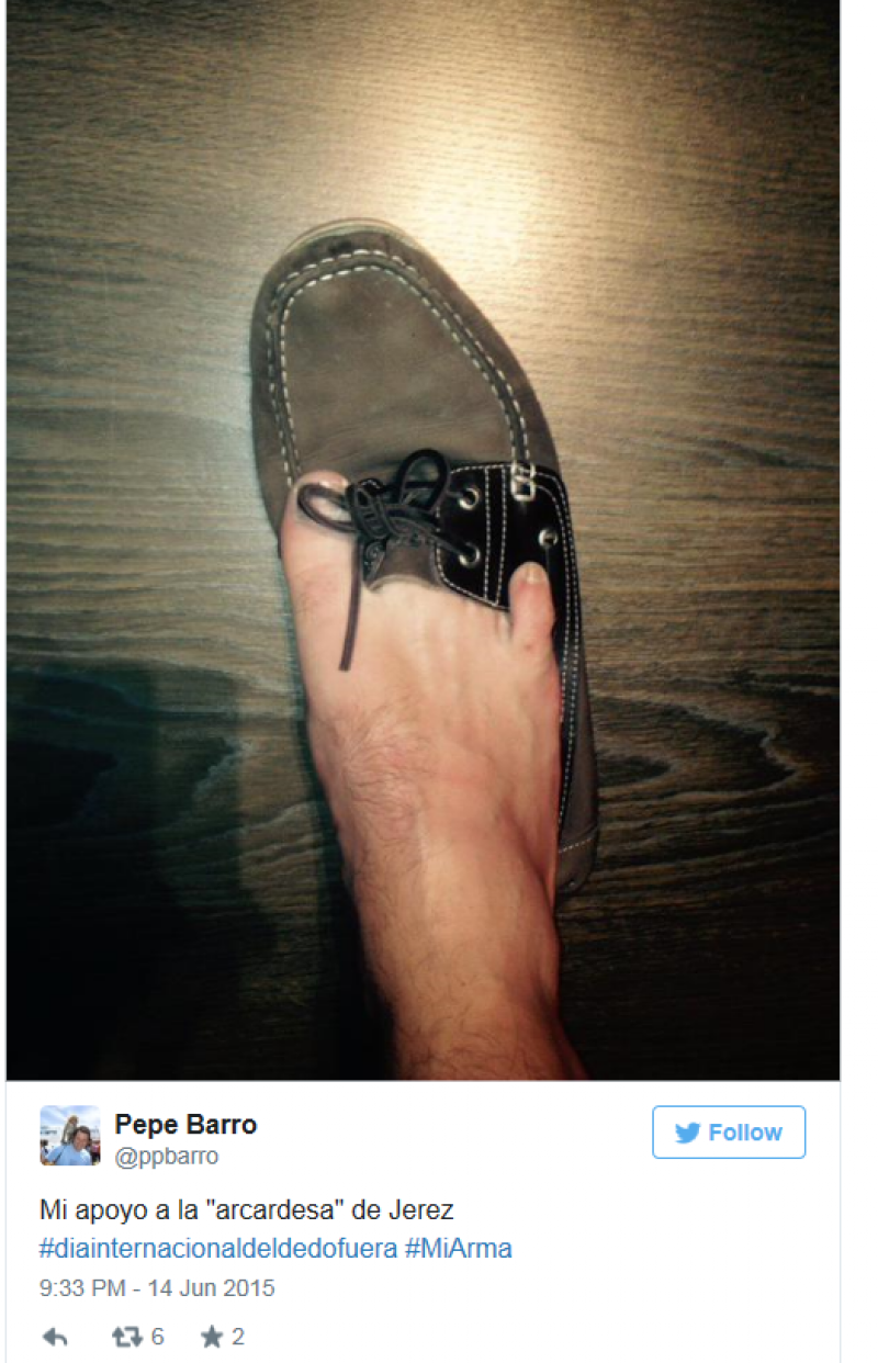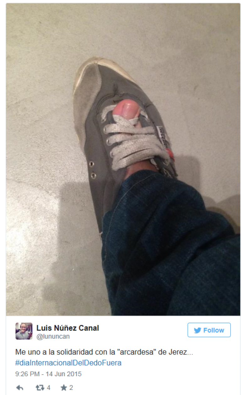 Het gevolg is een grappige foto die op het internet al snel viraal ging en gedoopt werd tot 'Toemaggedon'. Onder de hashtag #InternationalStickyOutToeDay posten verschillende mensen op Twitter uit solidariteit foto's van hun eigen tenen die uit hun schoenen steken.
