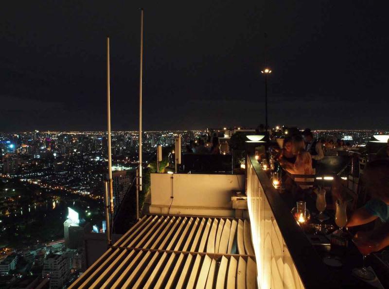 Een grillrestaurant in openlucht op de 61ste verdieping van het Banyan Tree Hotel dat je hetzelfde uitzicht op de grootstad geeft als een vogel op de vlucht.