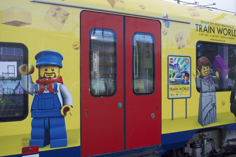 Ter gelegenheid van de expo heeft de NMBS een trein uitgedost in een Legojasje. Vanaf vandaag kan je hem op de Belgische sporen spotten. Gisteren maakte de Legotrein zijn eerste rit van station Brussel-Zuid naar Schaarbeek.