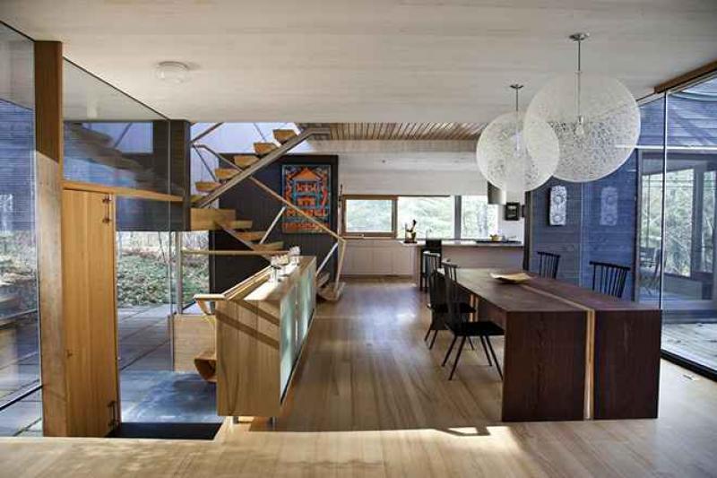 Gray Organschi Architectur toverde een klein, lokaal treindepot in Connecticut om tot een beeldschone woning. Het is gelegen langs de oude spoorweg van River Valley die nog tot het einde van de 19de eeuw actief was.