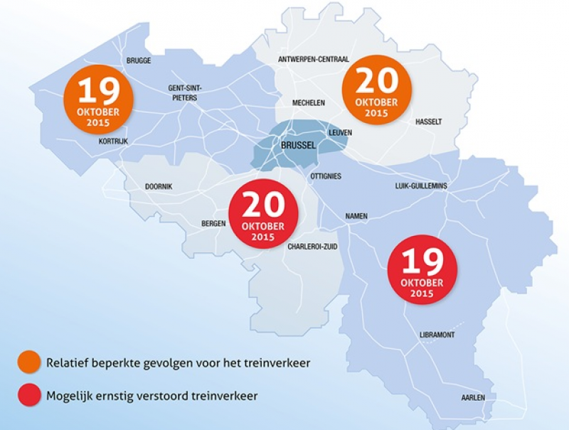 De acties in de provincies Oost- en West-Vlaanderen, Luxemburg, Luik, Namen en een deel van Waals-Brabant begonnen zondagavond om 22 uur. Volgens de NMBS zou de hinder in Vlaanderen "relatief beperkt" moeten zijn.
