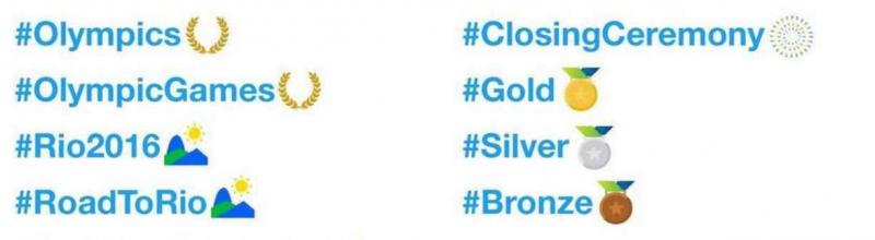 Verder leveren ook hashtags als Olympics, Rio2016, Gold, Silver en Bronze een kleurrijke emoije op, net als namen van sporten als #CyclingBMX of #Archery voor bmx'en en boogschieten. In totaal zijn er zo'n 200 nieuwe, olympische afbeeldingen beschikbaar.