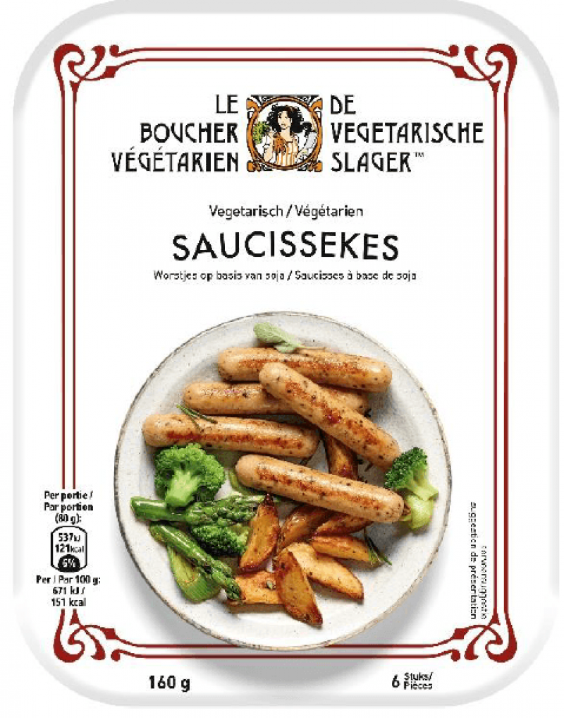De Vegetarische Slager bereidt worsten, spek en hamburgers waar geen dier aan te pas komt. Het plantaardige vlees wordt geproduceerd op basis van peulvruchten, soja, lupine, erwten, bonen en tarwe. Voor de Belgische markt hebben de vleesvervangers sappige, Brusselse namen gekregen: Poulettekes, Le Gehackt Super Hâché, Saucissekes, Boulettes Very Chouettes, Le Burger en de Specks'kes Fumés.