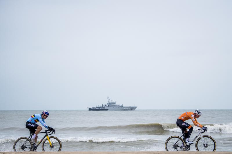 En dat bleek al vroeg na de start. Van der Poel en Van Aert schoten als een komeet weg en op het strand zagen we al een aanzienlijke kloof met de anderen. Achter hen streden Toon Aerts, Laurens Sweeck, Michael Vanthourenhout, Eli Iserbyt en Tom Pidcock om de derde plek.