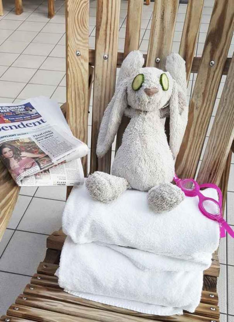 "Ik ben mijn eigenaar kwijtgeraakt bij het ontbijt", stond er bij de foto van het verloren beestje. De oproep werd massaal gedeeld, dus besloot het personeel hun speciale gast te verwennen met een vijfsterren-service. Gelukkig kwam het knuffeldier weer bij zijn baasje terecht. De ouders van het blonde meisje plaatsten op hun beurt een foto op Facebook als bedanking.