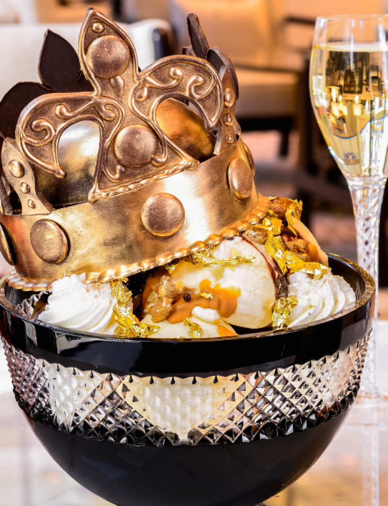 De ijscoupe wordt geserveerd in een kristallen schaal, die de klanten mogen houden, met een fles Dom Perignon uit 2003. Die alleen al kost ongeveer 150 dollar.