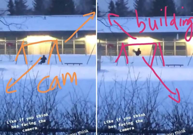 Hij plaatste de beelden op Twitter en ook daar raakten heel wat mensen in de war. De meerderheid gelooft dat hij in de richting van de camera schommelt, want op een bepaald moment bevindt de bovenste balk zich vóór de man, wat niet mogelijk is mocht hij in de richting van het gebouw schommelen. Of wat denk jij?