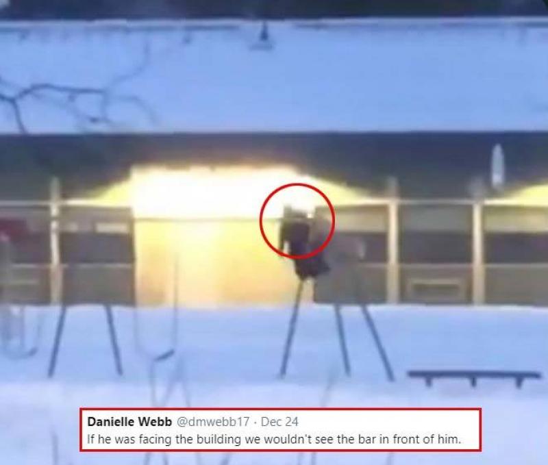 Eric Tupper filmde een tijdje geleden een man op een schommel in Anchorage (Alaska). In het filmpje hoor je enkele mensen zich afvragen in welke richting de man kijkt. Naar de camera toe of in de richting van het gebouw?