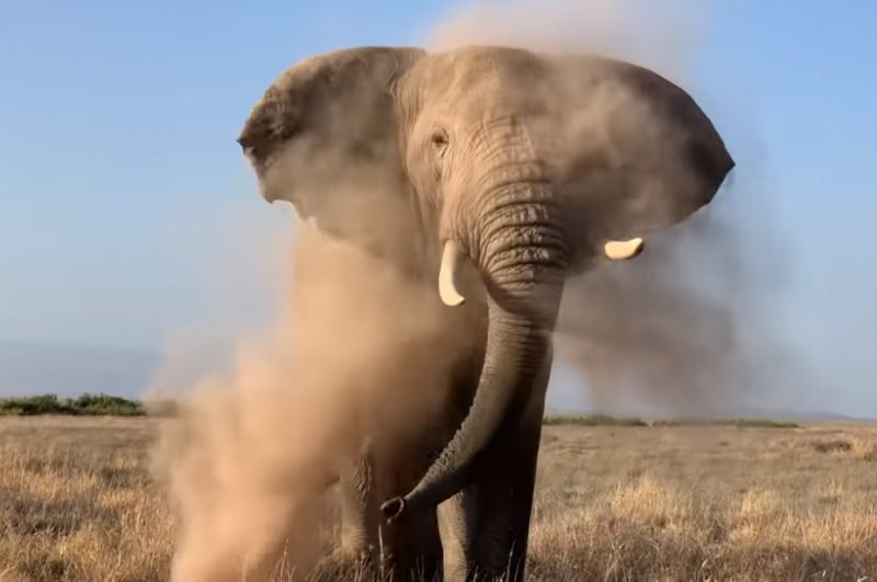 De Indiase toerist Tapan Sheth filmde in het Keniaanse Amboseli National Park een olifant net op het moment dat die moest niezen. Plotseling niest de olifant zo hard dat het stof van zijn lijf vliegt. Met zo'n lange neus/slurf zal dat wel heel veel deugd doen!