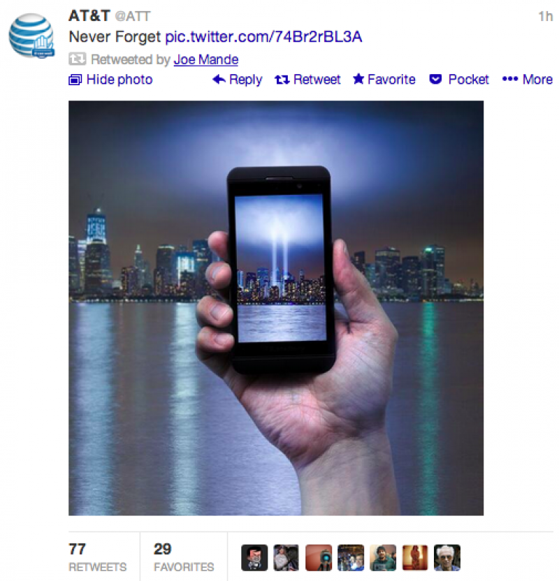 Vaak spelen bedrijven in op de actualiteit, maar ook daar kan het wel eens misgaan. Zo vond AT&T de lichtshow om 9/11 te herdenken het ideale moment om te laten zien hoe goed de camera van een Samsung is.