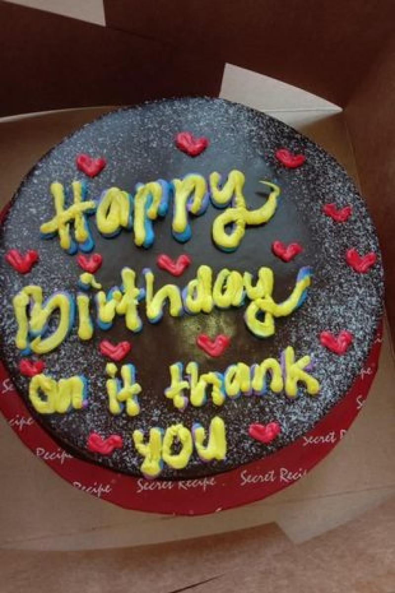 "Happy birthday on it thank you" ("Gelukkige verjaardag erop bedankt"), staat in plaats daarvan op de chocoladetaart. De bakker had de boodschap die de vrouw aan hem had overgemaakt dus gewoon volledig overgeschreven. Een fout die wel vaker voorkomt, zo leert een snelle Google-zoektocht ons. Nochtans had de vrouw bij deze taart met behulp van aanhalingstekens rond de 'Happy birthday' aangegeven dat enkel dat stukje tekst erop moest, verduidelijkt de maker van de foto nog.