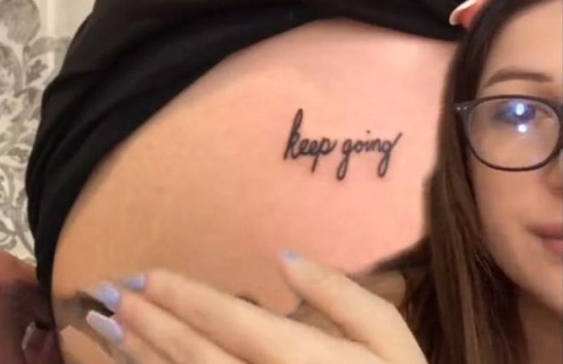 Maria Avery legt op TikTok uit dat ze op Pinterest een tattoo zag met een inspiratievolle boodschap: Keep going', oftewel: Hou vol'. Ze liet de boodschap op haar bil tatoeëren, maar haar familie wees er achteraf op dat de boodschap op die plaats dubbelzinnig was en verkeerd geïnterpreteerd kon worden. Mijn familie was erdoor gechoqueerd. Ze vonden het te seksueel getint en wilden dat ik de tattoo liet verwijderen, vertelt ze aan Daily Star.