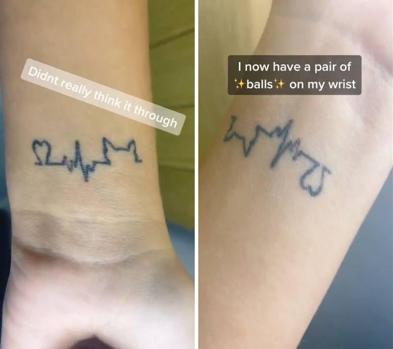 Lucy Armitage liet onlangs in een impulsieve bui een tatoeage zetten op haar pols. De bedoeling was een combinatie van een hartje, een hartslag en kattenoortjes. De 20-jarige vrouw uit Leeds was tevreden met het resultaat, tot ze de tattoo ondersteboven aanschouwde.