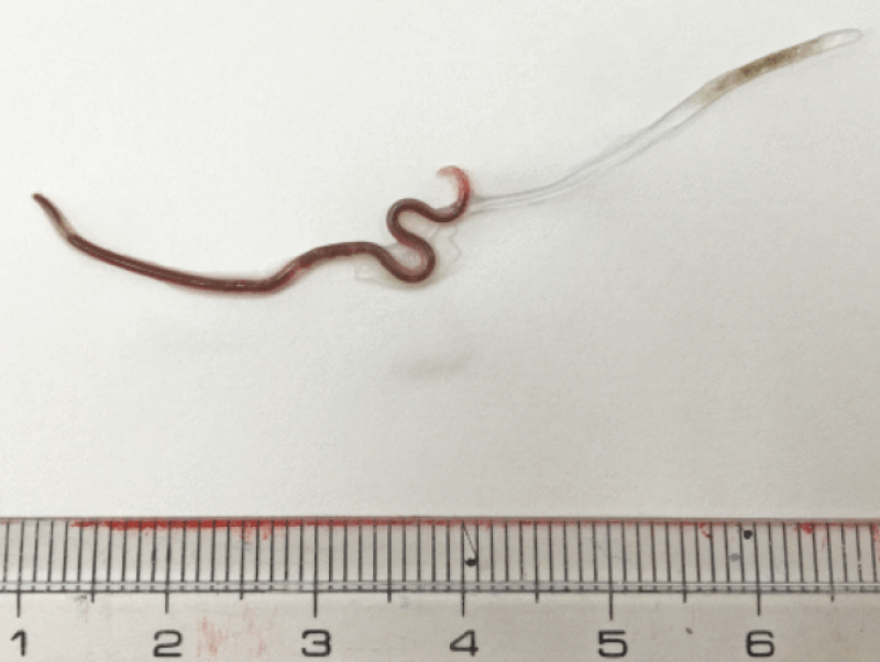 De 25-jarige vrouw uit Tokyo had last van een pijnlijke en geïrriteerde keel en ging met de klachten naar het St Luke's ziekenhuis in Japan. Daar bleek dat de Japanse geen last had van een griepje, maar wel van een parasitaire worm. De dokters haalden met behulp van een pincet een glibberig beestje van maar liefst 38 millimeter lang en 1 millimeter breed uit haar amandelen.