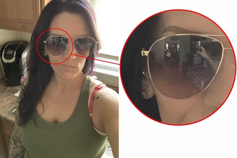Sara Medeiros bestelde onlangs een zonnebril en paste hem bij haar thuis in Massachusetts. Ze trok een foto om te zien of de bril haar stond en stuurde het kiekje door naar haar vriend. Ze merkte echter iets vreemds op in de reflectie van een van de glazen. In de deuropening lijken immers twee figuren te verschijnen.