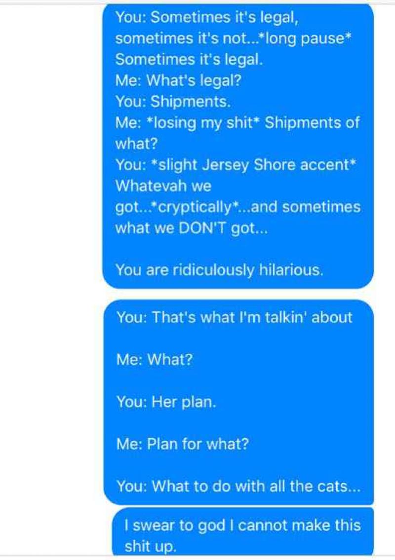 "Dat is wat ik nu bedoel." "Wat?" "Haar plan." "Welk plan?" "Wat we moeten doen met de katten."