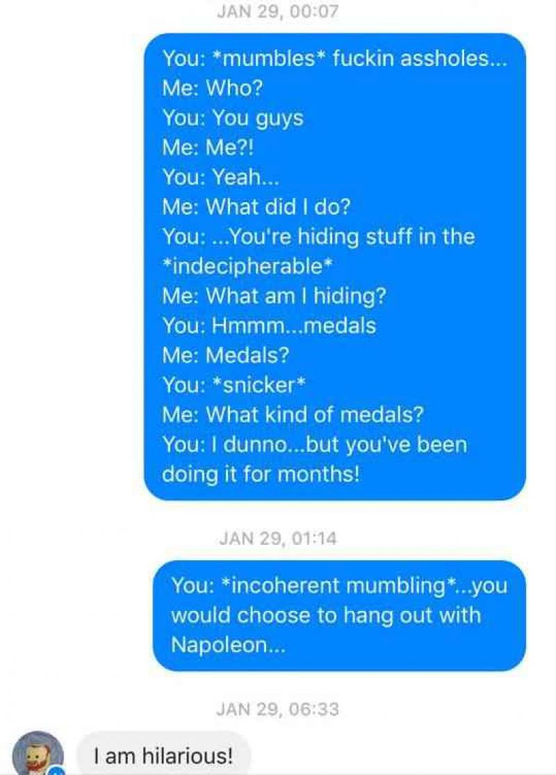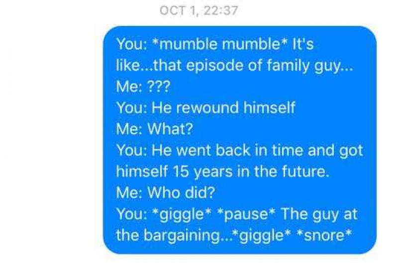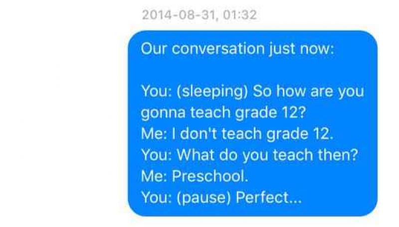 Aidan Hailes is zo'n loslippige slaper. De Canadees is al sinds 2003 samen met Lindsay Stamhuis, die dus al heel wat verbale escapades heeft mogen aanhoren. Omdat die meestal ontzettend grappig zijn, besloot ze op een gegeven moment te noteren wat haar geliefde allemaal te zeggen heeft gedurende die nachtelijke uren. Die stukjes conversatie stuurt ze hem dan door, zodat hij de ochtend erna ook kan meegenieten.