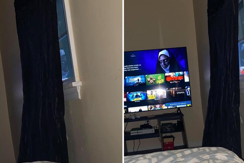 Ze besefte echter net op tijd dat het gewoon een weerspiegeling was van haar televisie. Daarop stond immers een lijst van films afgebeeld, waaronder 'A Nun's Curse', een horrorfilm over een griezelige non. Het was dus dat beeld dat ze in haar raam zag.
