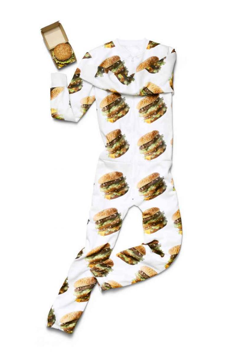 McDo wil zijn nieuwe dienst McDelivery promoten. Dat is een dienst voor thuislevering in samenwerking met UberEATS. Daarom heeft de fastfoodketen onder andere een onesie met hamburgers ontworpen. De kledij draagt de slogan 'World famous'.