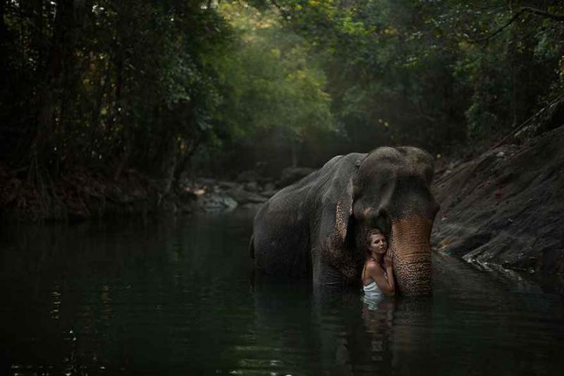 De volgende beelden zijn verbazingwekkend genoeg niet gefotoshopt. Dit zijn echte dieren en modellen die in samenwerking met de Russische fotograaf Katerina Plotnikova een aantal surrealistische en bijna magische beelden creëren. Hoewel ze allemaal zijn genomen onder toezicht van professionele trainers, lijkt het ons best angstaanjagend om zo te poseren met een beer of een tijger.