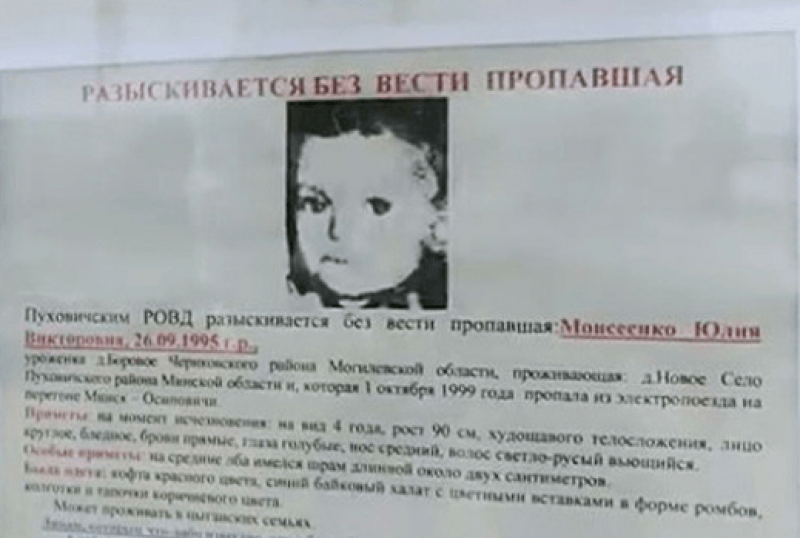 Op een treinreis van Minsk naar een stad in het oosten van Wit-Rusland in 1999 verdween het meisje en kwam ze op één of andere manier uiteindelijk in de stad Rjazan in het westen van Rusland terecht. Daar herinnerde ze zich enkel de voornamen van haar ouders, legde het Wit-Russische ministerie van Binnenlandse Zaken uit.