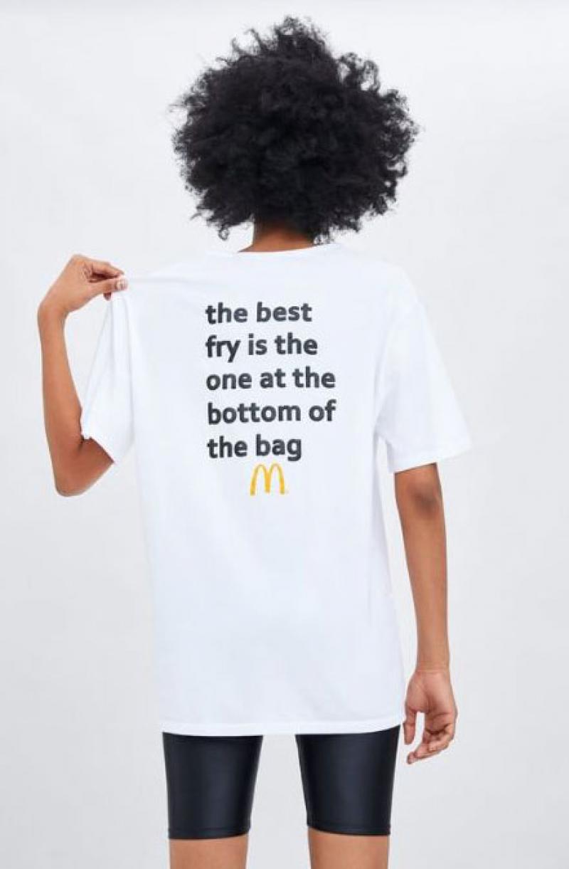 De Spaanse kledingketen Zara is een samenwerking aangegaan met McDonald's. Zara verkoopt nu een heuse collectie met verwijzing naar de Amerikaanse fastfoodketen. Voorlopig gaat het enkel om unisekse T-shirts en truien.