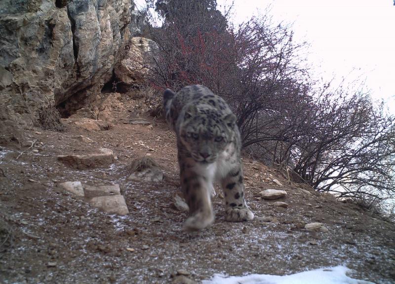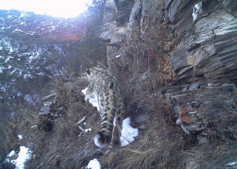 De foto werd genomen door een verborgen infraroodcamera in de Nujiang River valley in Chamdo, Tibet. Best opvallend, want het is de eerste keer dat er in deze regio een sneeuwluipaard werd gespot. Bovendien laat het mysterieuze roofdier zich niet snel zien, waardoor hij zelfs de bijnaam 'geest van de bergen' heeft.