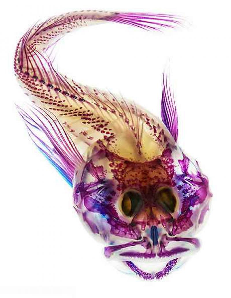 Adam Summers is een onderzoeker van gewervelde organismes aan de University of Washington. Een deel van zijn onderzoek is foto's nemen van de binnenkant van vissen. Maar voor die foto's doet Adam heel wat meer dan gewoon de vis opensnijden en er een foto van nemen. Hij maakt er echte kunstwerkjes van, die de ingewikkelde geraamtes van de zeedieren perfect weergeven.