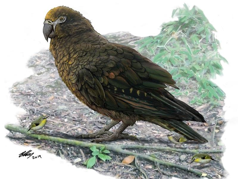 "Nieuw-Zeeland staat bekend om zijn gigantische vogels. Niet alleen moa's, grote loopvogels, domineerden de vogelwereld, maar ook reusachtige ganzen en de Aptornis deelden vrijelijk de bosbodem terwijl enorme adelaars de lucht bevolkten", verklaarde professor Trevor Worthy woensdag. "Maar tot nu toe had niemand ooit ook maar ergens een uitgestorven reuzenpapegaai ontdekt."