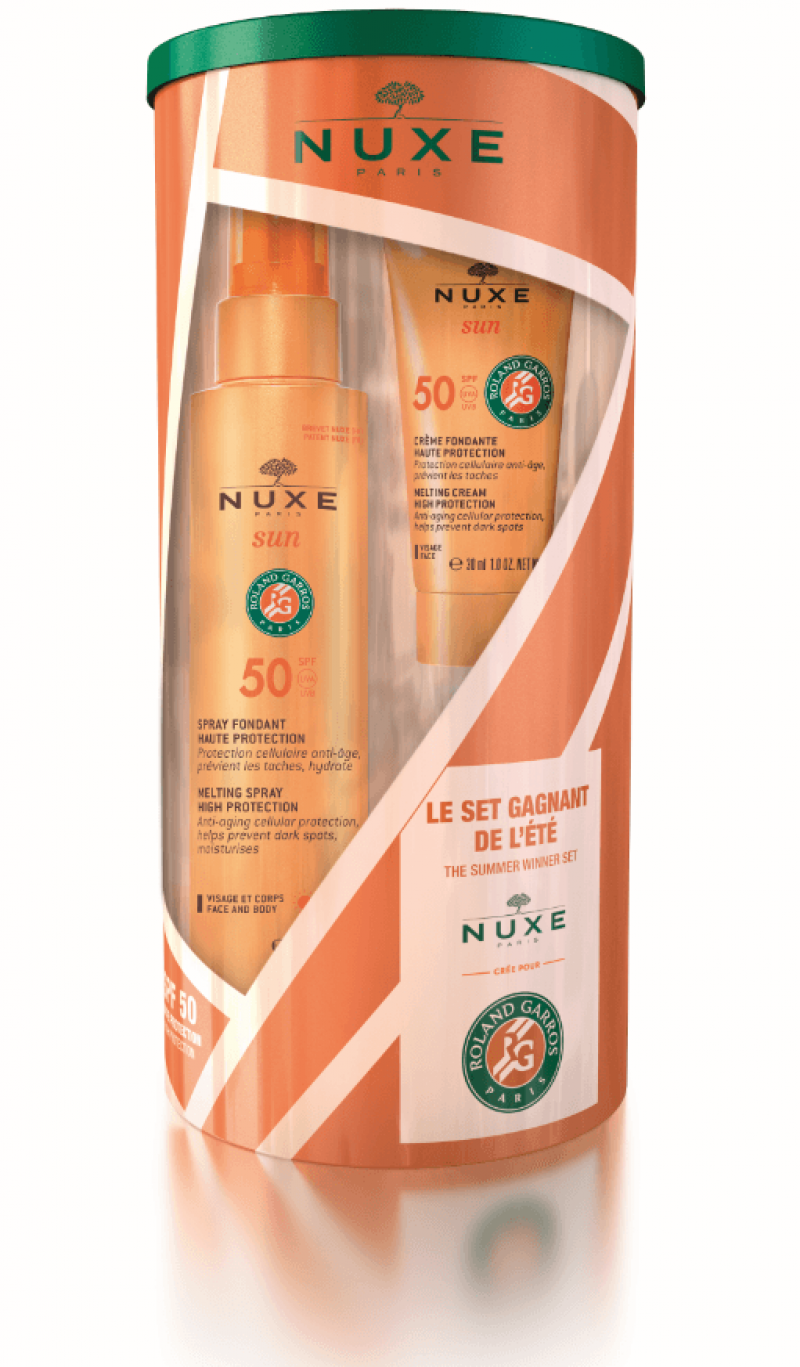 Dé samenwerking van de zomer. Roland-Garros koos Nuxe voor zijn eerste partnership met een beautymerk. Deze all-in met een zomers parfum én het logo van het beroemde graveltornooi garandeert bescherming tegen UVA en UVB, een optimale hydratatie en protectie tegen huidveroudering door de zon.