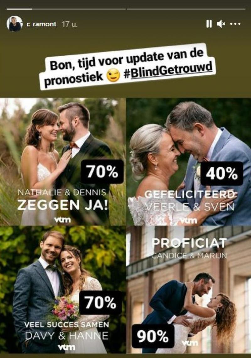 Christophe Ramont, die in de vorige editie tevergeefs gekoppeld werd aan Nick, heeft zich er op Instagram aan gewaagd. Hij geeft Nathalie en Dennis 70 procent slaagkans. Begrijpelijk, want hoewel Dennis duidelijk zijn muze heeft gevonden, kan Nathalie zich nog niet volledig openstellen naar hem. Dat kan uiteraard nog wel komen.