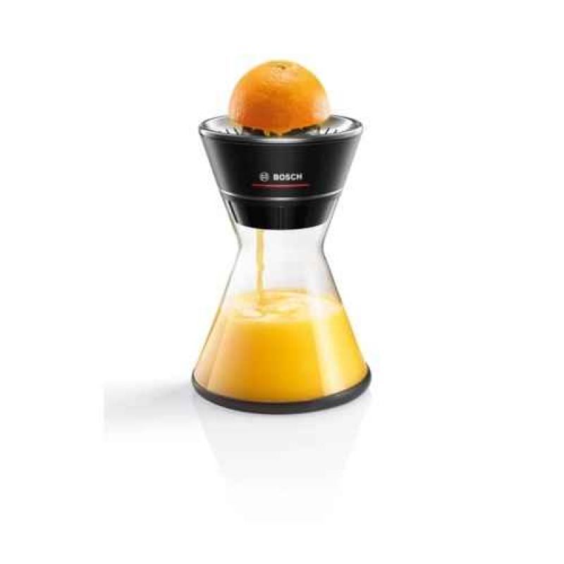Een verse fruitsap aan het begin van de dag geeft je een vitamineboost. De elektronische citruspers van Bosch kan fruitsap voor het hele gezin aan. Je dient het sap meteen op in de stijlvolle kan.