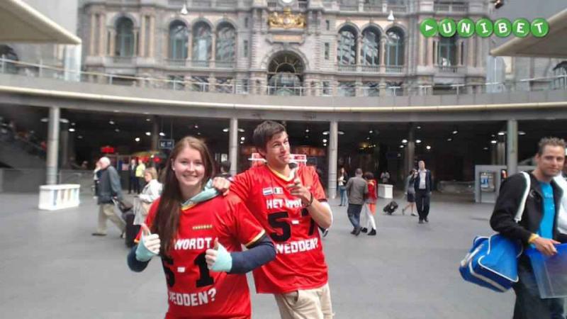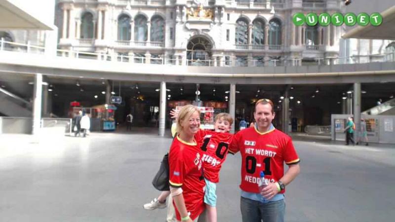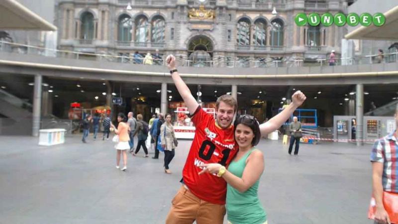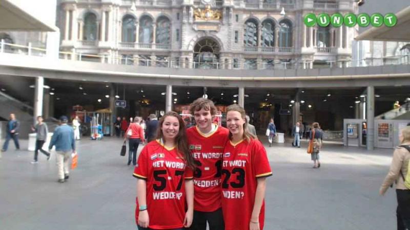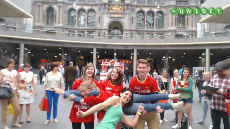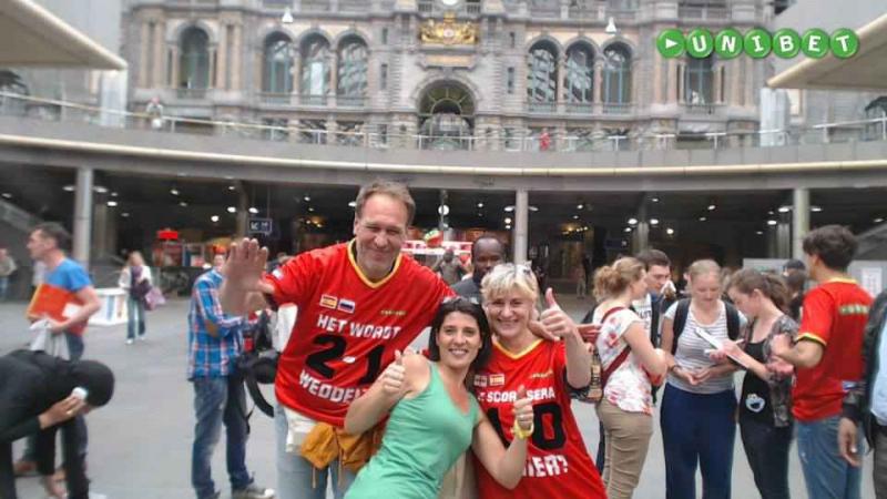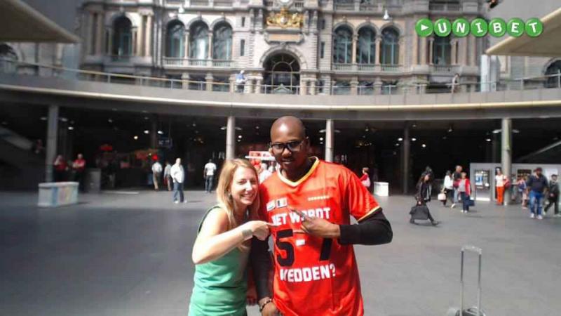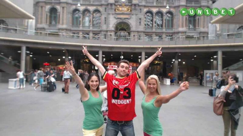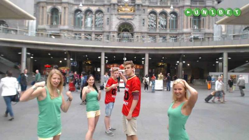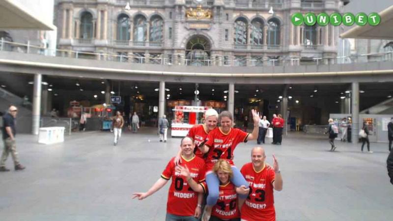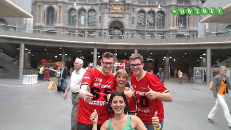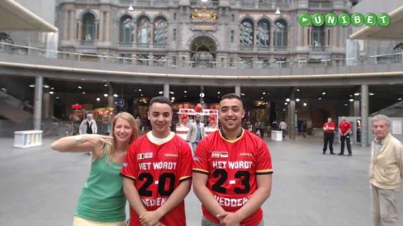 Supporters van de Rode Duivels konden hun pronostiek voor een wedstrijd van het WK een T-shirt kleven. Er werden 5000 T-shirts uitgedeeld aan enthousiaste fans in de stations Brussel-Zuid en Antwerpen-Centraal. Deze fans lieten we een foto maken in de übercoole Unibet photobooth. Wie de juiste pronostiek heeft en de leukste foto, wint een tegoed van 500 euro. Unibet bedankt alle supporters voor hun deelname, de winnaar zal binnenkort bekend gemaakt worden.