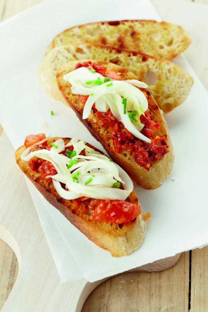 Met de nakende zomer keren de avonden waarop je lekker lang op het terras kan vertoeven natuurlijk terug. Een bijhorend aperitiefhapje mag dan uiteraard niet ontbreken. Wil je eens wat anders dan de traditionele kaas- en salamiblokjes? Probeer dan zeker eens bruschetta te maken. Dit heerlijke zomerse hapje beleg je zoals je wilt en is bovendien heel eenvoudig om te bereiden. Wie niet weet hoe eraan te beginnen, kan zich alvast laten inspireren door dit recept voor bruschetta met een compote van tomaat en venkel.