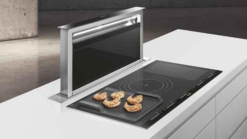 Een open keuken moet mooi integreren in de woonkamer. Een dampkap is daarbij vaak een storend element. Of hij maakt te veel lawaai, of hij verpest het zicht tijdens het aperitief.