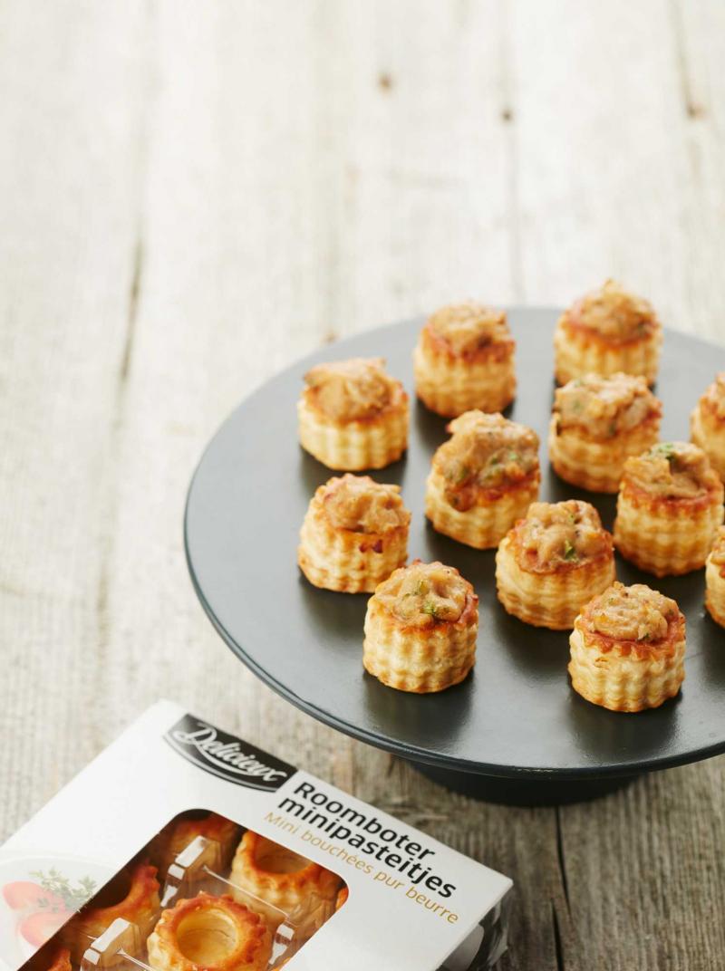 Vul de roomboterpasteitjes met het faux-gras mengsel en bak ze gedurende 7 minuten in de oven.