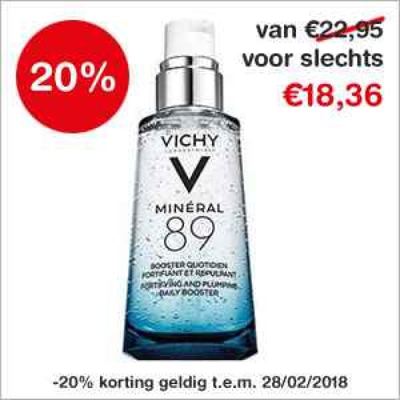 Minéral 89 is de eerste booster van Vichy die je huid een dagelijkse verfrissing geeft. De booster is bedoeld om je huid een extra dosis hydratatie te geven, wat erg belangrijk is als eerste verdedigingslinie tegen schade door externe factoren. Minéral 89 is rijk aan meerdere hydraterende ingrediënten zoals glycerine, hyaluronzuur en het Mineraliserend Thermaal Water van Vichy, om de huid dagelijks te beschermen en te versterken. Door de lichte, frisse textuur en zijn sterke hydratatie is Minéral 89 perfect voor een droge huid, ongeacht welke leeftijd je hebt.