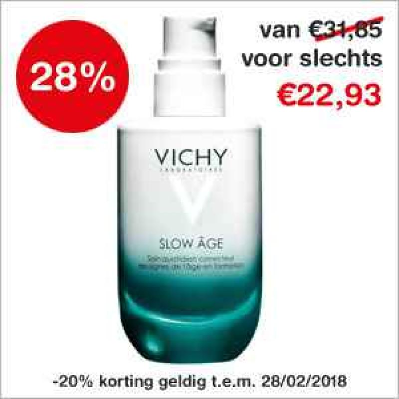De Laboratoires Vichy hebben ontdekt dat bepaalde verouderingsverschijnselen zich opstapelen onder invloed van omgevingsfactoren (UV-straling, vervuiling), emoties (stress, vermoeidheid) en leefgewoonten. Dankzij die ontdekking kon Vichy haar eerste verzorgingscrème ontwikkelen die opkomende tekenen van huidveroudering vertraagt: Slow Âge.